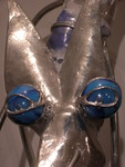Sculptuur gemaakt uit blauwe kunststof, glas, lood, koper en tin.
